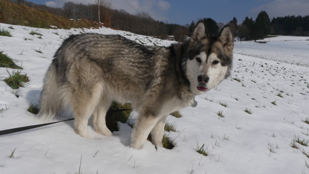 Tsuki, malamute d’Alaska de 3 ans, ma chienne de travail.